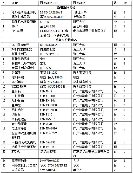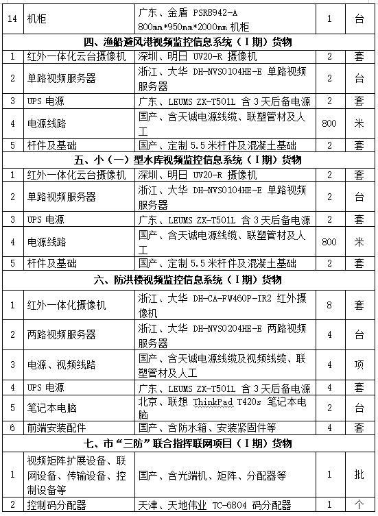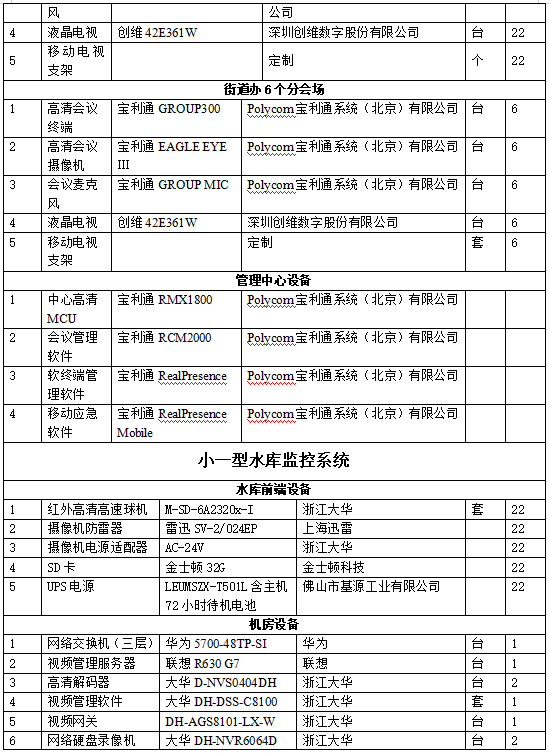 1.市三防視頻會商及監(jiān)控系統(tǒng)主要設(shè)備概覽表
