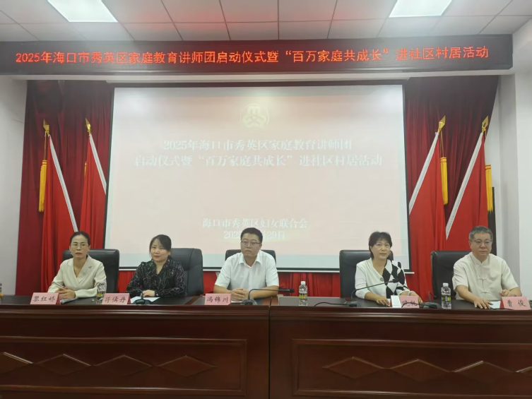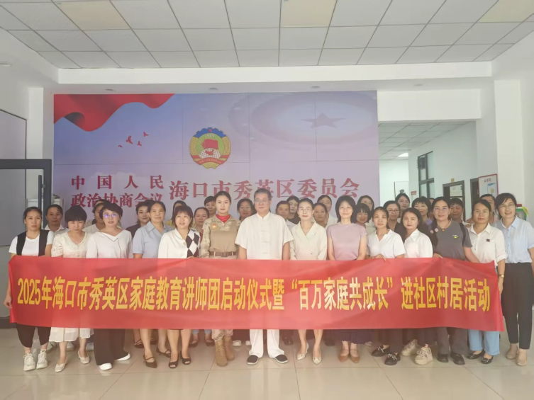 ??诰W(wǎng)9月30日消息(特約記者陳創(chuàng)淼 記者云夢怡)9月29日,秀英區(qū)家庭教育講師團(tuán)啟動儀式暨“百萬家庭共成長”進(jìn)社區(qū)村居活動成功舉辦。區(qū)委政法委、區(qū)教育局、區(qū)退役軍人局相關(guān)負(fù)責(zé)人,市、區(qū)、鎮(zhèn)、村四級婦聯(lián)系統(tǒng)干部及秀英區(qū)婦聯(lián)家庭教育講師團(tuán)成員等80余人參加活動。