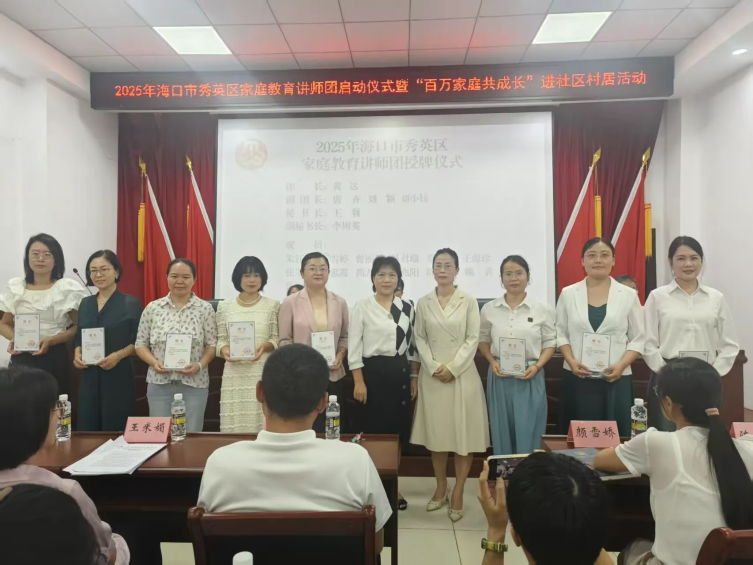 啟動儀式上,??谑袐D聯(lián)、秀英區(qū)相關(guān)領(lǐng)導(dǎo)為全體家庭教育講師團(tuán)成員授牌。接過聘書的講師團(tuán)成員們紛紛表示,將立足自身工作職責(zé),盡己所能,為秀英區(qū)家庭送去科學(xué)的教育理念和方法。