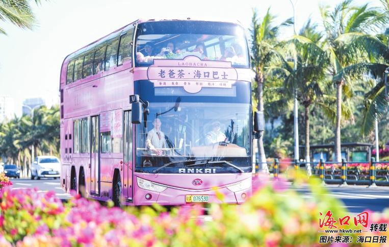 ??诠还具\營部副經(jīng)理陳明鏡介紹,“老爸茶·??诎褪俊币?2米長粉色雙層觀光巴士為載體,將海南老爸茶文化與城市漫游深度結(jié)合,為游客帶來富有本土風(fēng)情的觀光體驗——