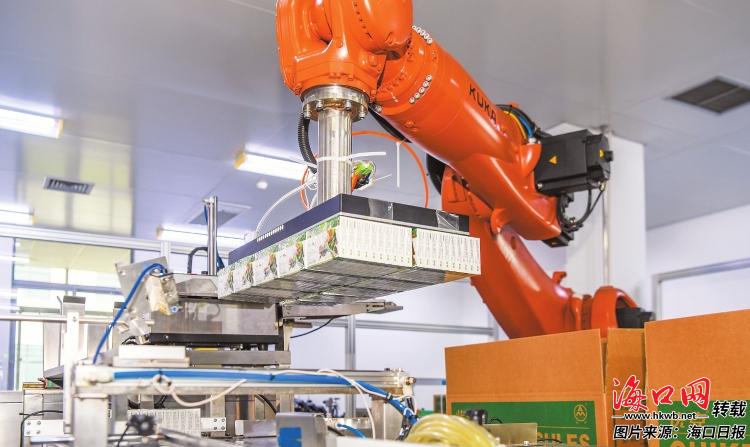 在海南亞洲制藥股份有限公司,智能化機械臂揮動“手臂”搬運產(chǎn)品。記者 康登淋 攝
